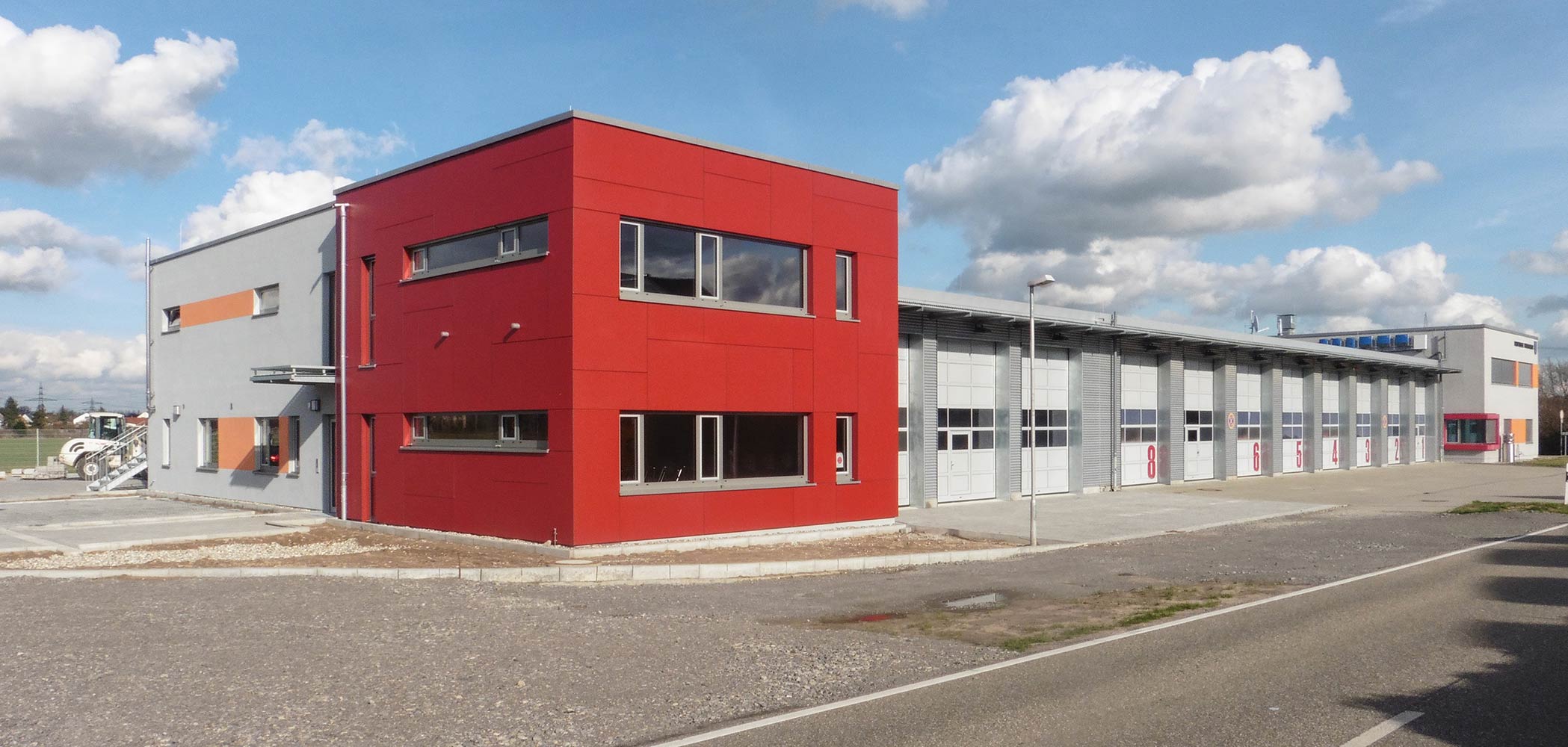 Neubau der Atemschutzübungsanlage des Landkreis Karlsruhe. Hier werden Angehörige der Feuerwehren aus dem Landkreis als Atemschutzträger ausgebildet und hier wird regelmäßig der Einsatz geübt. Die Anlage ist Standort des Deutschen Roten Kreuzes und der Arge Notfallhilfe.