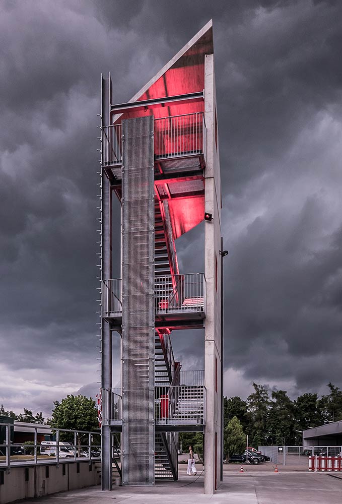 Der Neubau der Feuerwache der Stadt Horb am Neckar befindet auf dem ehemaligen Gelände der Hohenberg- Kaserne. Die auf dem Grundstück vorhanden KFZ- Abstellhallen Nr. 19 und Nr. 17 bilden das Grundgerüst der neuen Feuerwehrwache und werden durch einen neu erstellten Verbindungsbau gemeinsam erschlossen. Der Planungsumfang umfasst das Entwickeln eines Funktionsschemas für unterschiedliche Anforderungen: