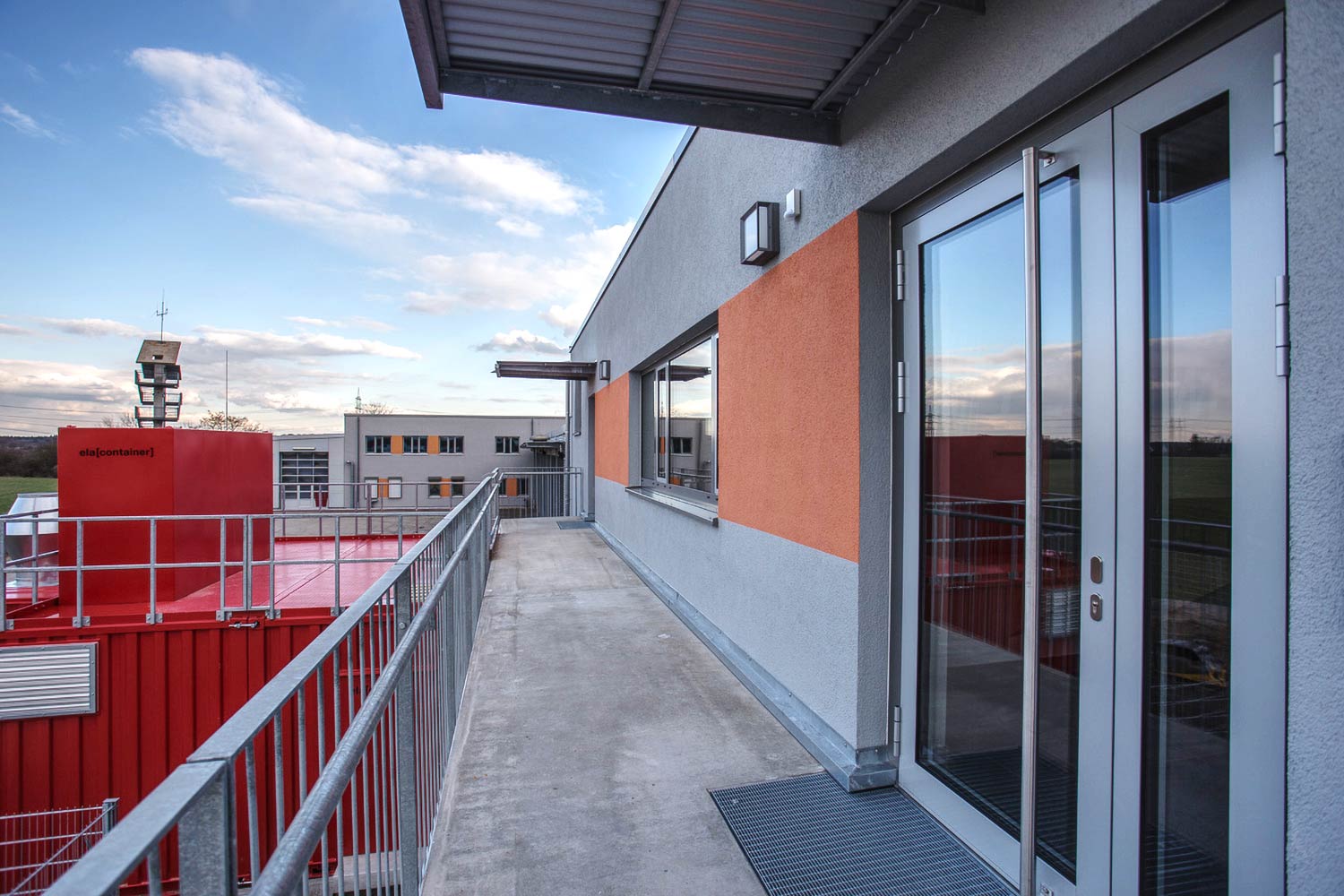 Neubau der Atemschutzübungsanlage des Landkreis Karlsruhe. Hier werden Angehörige der Feuerwehren aus dem Landkreis als Atemschutzträger ausgebildet und hier wird regelmäßig der Einsatz geübt. Die Anlage ist Standort des Deutschen Roten Kreuzes und der Arge Notfallhilfe.
