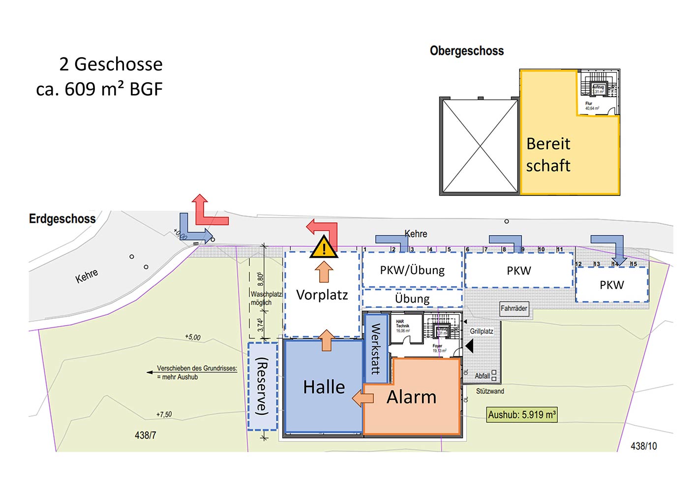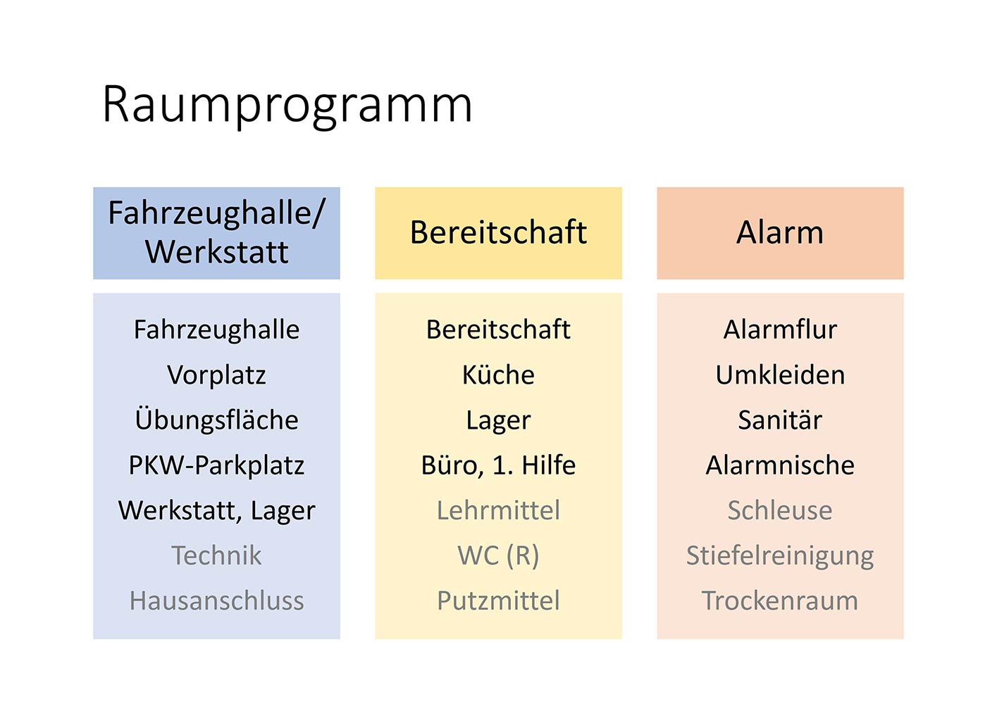 - Feuerwache für 2 Fahrzeuge (LF, TSF-W) und 30 Personen